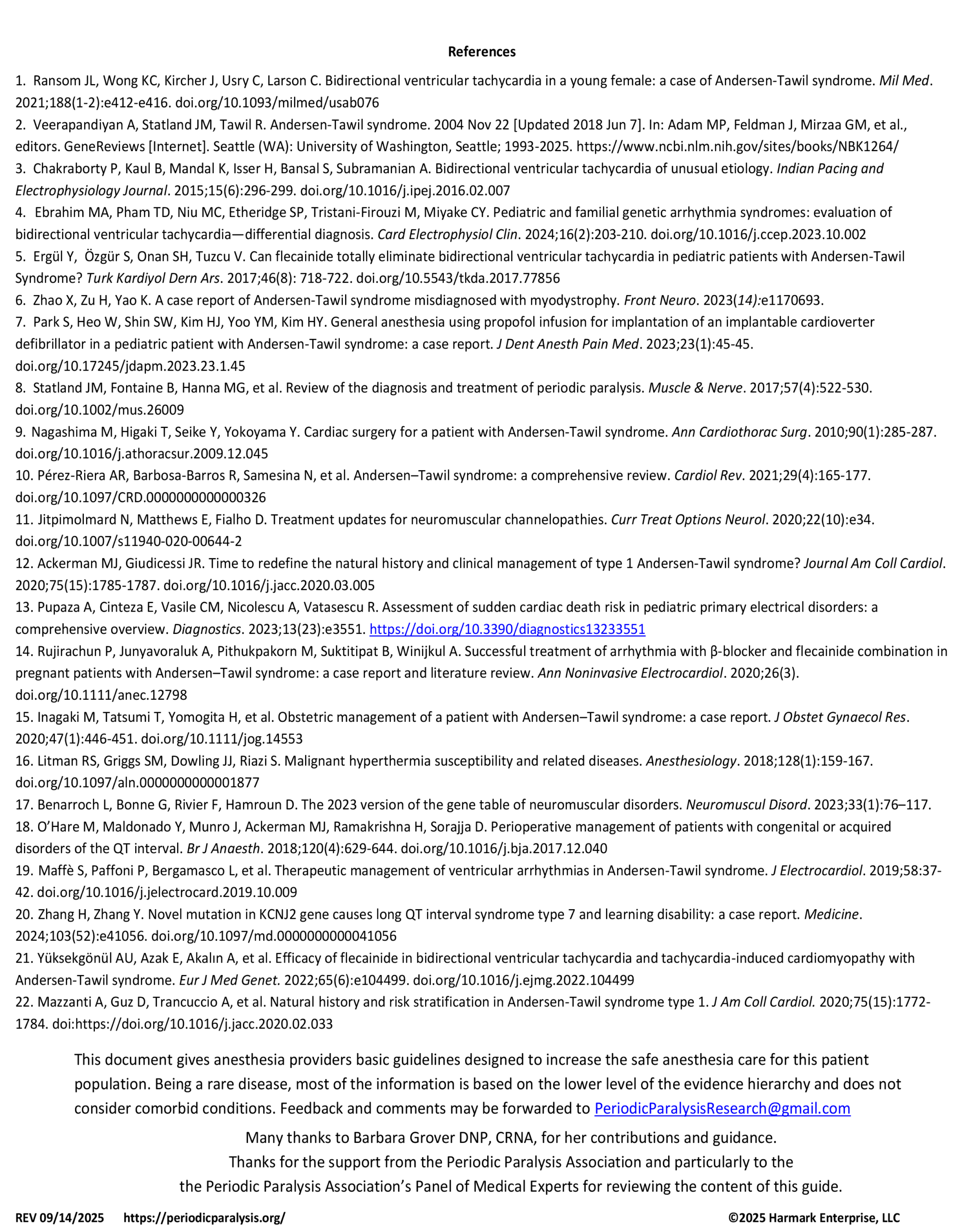 Anesthesia for the Patient with Andersen-Tawil Syndrome
